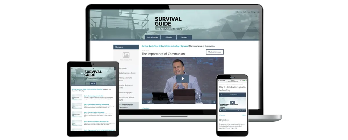 Whether you have a terminal illness, or are struggling with chronic pain or disease, we recommend starting the course as soon as you can. The sooner you can start plugging in and letting God's redeeming promises be downloaded into your heart, the better! There's so much valuable teaching available to you through our healing Survival Guide.